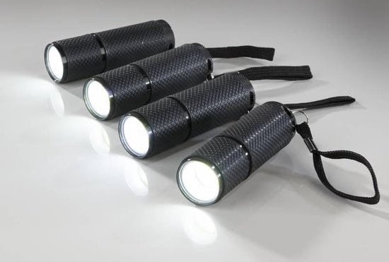 und wird in einem praktischen Vierer-Set geliefert. Da die Taschenlampe extra leicht ist