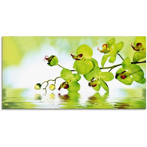 Das Glasbild mit dem Motiv "Schöne Orchidee mit grünem Hintergrund" des Künstlers tobkatrina