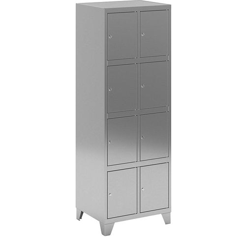 4er-Schließfachschrank aus Edelstahl 2 Abteile mit Füßen. Anlieferung = montiert. Anzahl