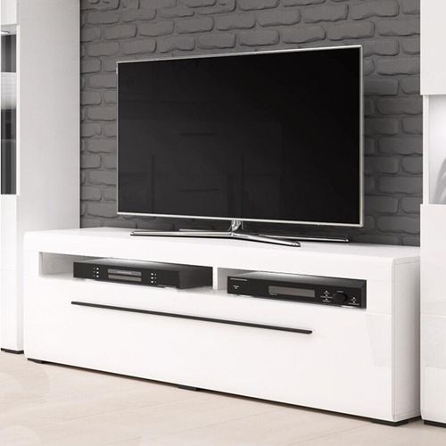Lowboard weiß 140 cm breit TURDA-83 Hochglanz Oberfläche inkl. LED Beleuchtung Moderne Möbel im