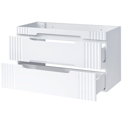 passt. Das moderne Design des Waschtisch-Unterschranks wird durch die seitlichen Rillen perfekt