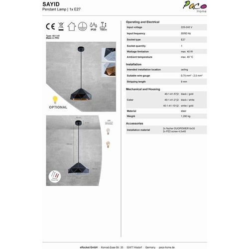 4066153013423 - Paco Home Pendelleuchte Hän...