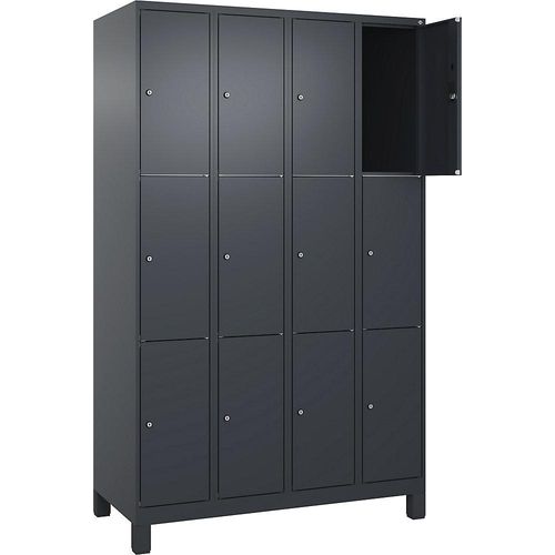 Schließfachschrank Classic PLUS 4 Abteile grau B 1200 mm 12 Fächer mit Füßen. Anlieferung