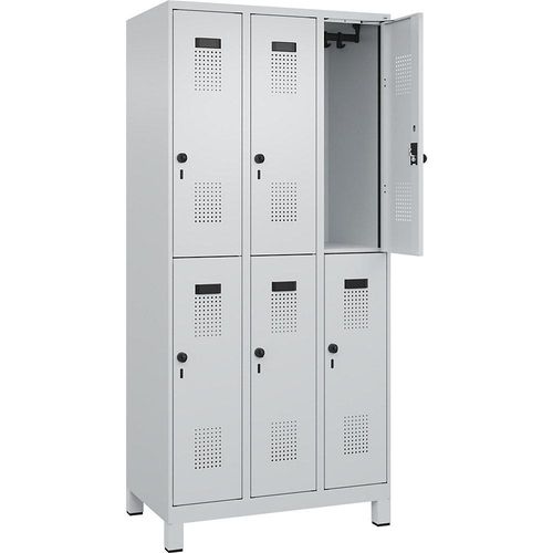 Doppelstock-Spind Evolo PLUS 3 Abteile lichtgrau B 900 mm mit breiten Füßen Drehriegel.
