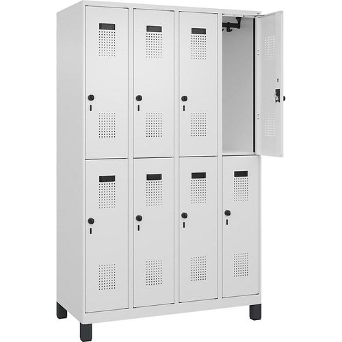 Doppelstock-Spind Evolo PLUS 4 Abteile verkehrsweiß B 1200 mm mit breiten Füßen
