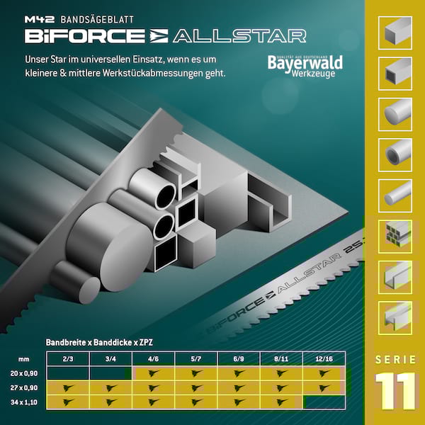 Allround-Sägeband ideal für kleinere und mittlere Werkstückabmessungen. Mit diesem lassen sich