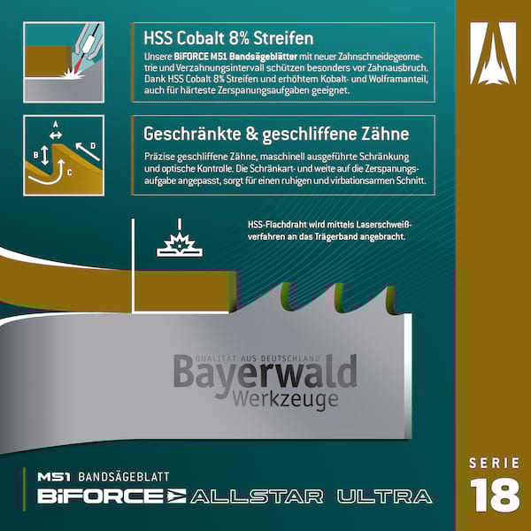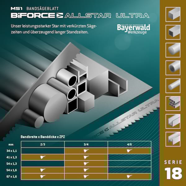 Bimetall-Sägebänder | Zahnteilungsempfehlungen () * Vorteile: * Sehr verschleißfest auch