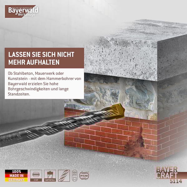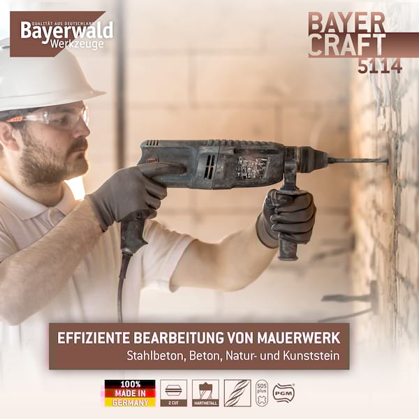 Chrom-Nickel-Molybdän-Stahl ist für die hohe Belastbarkeit des Steinbohrers von Bayerwald