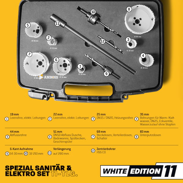 " Bi-met Lochsägen-Set "White Edition 11" von Amboss in praktischen Transportkoffer - perfekt