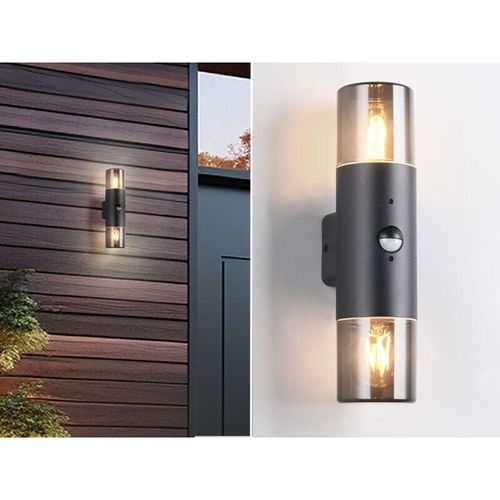 Außenwandleuchte Up and Down Light mit Bewegungsmelder in Schwarz matt Rauchfarbig -