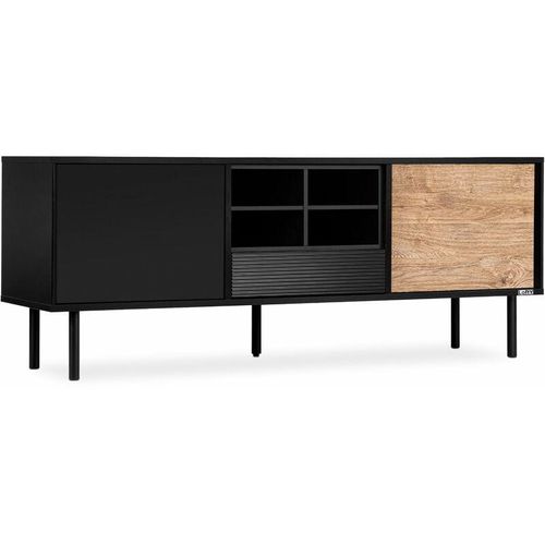 Kombination aus schwarzem Laminat und eichenfarbenem Dekor die perfekt zusammenpassen. Die