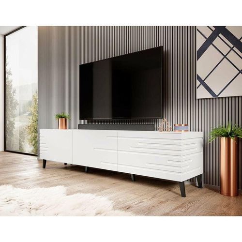 Platz für einen großen Fernseher. Das kannelierte Design in Kombination mit den massiven