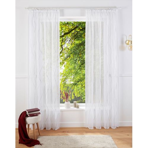 Transparente Gardine mit schöner Wellen-Stickerei. Maße & Gewicht: Gewicht: 52 Breite: 140 cm