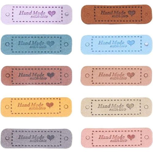 Packungsinhalt: 60 handgenähte Etiketten in 10 Farben 6 von jeder Farbe. Material: Aus PU mit