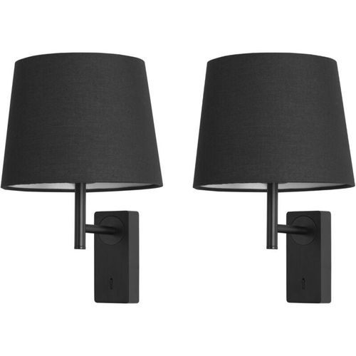Aura - 2 Apliques de Pared para Dormitorio E27 con Interruptor ON OFF en la Base. Color Negro con Pantalla de Textil