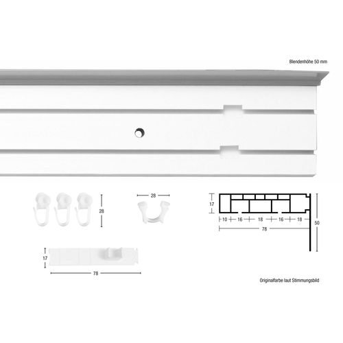 enthalten: Schiene weiß Endkappen Gleiter Endfeststeller (alles aus Kunststoff) inkl. Dübel