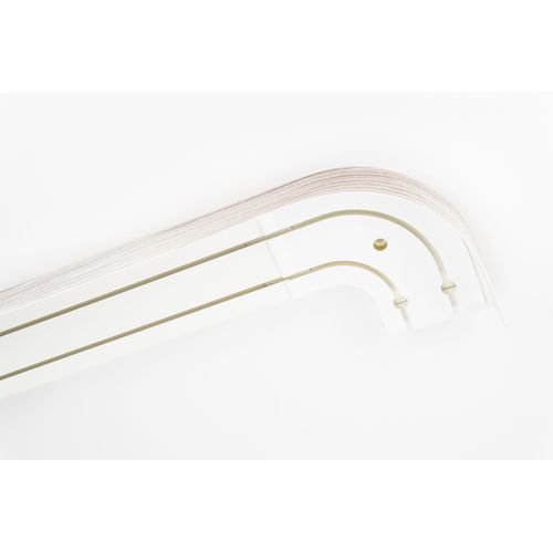 Klassische Vorhangschiene aus Kunststoff weiß mit Rundbogen links und rechts sowie mit Blende