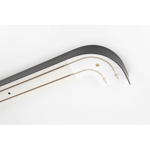 Klassische Vorhangschiene aus Kunststoff weiß mit Rundbogen links und rechts sowie mit Blende