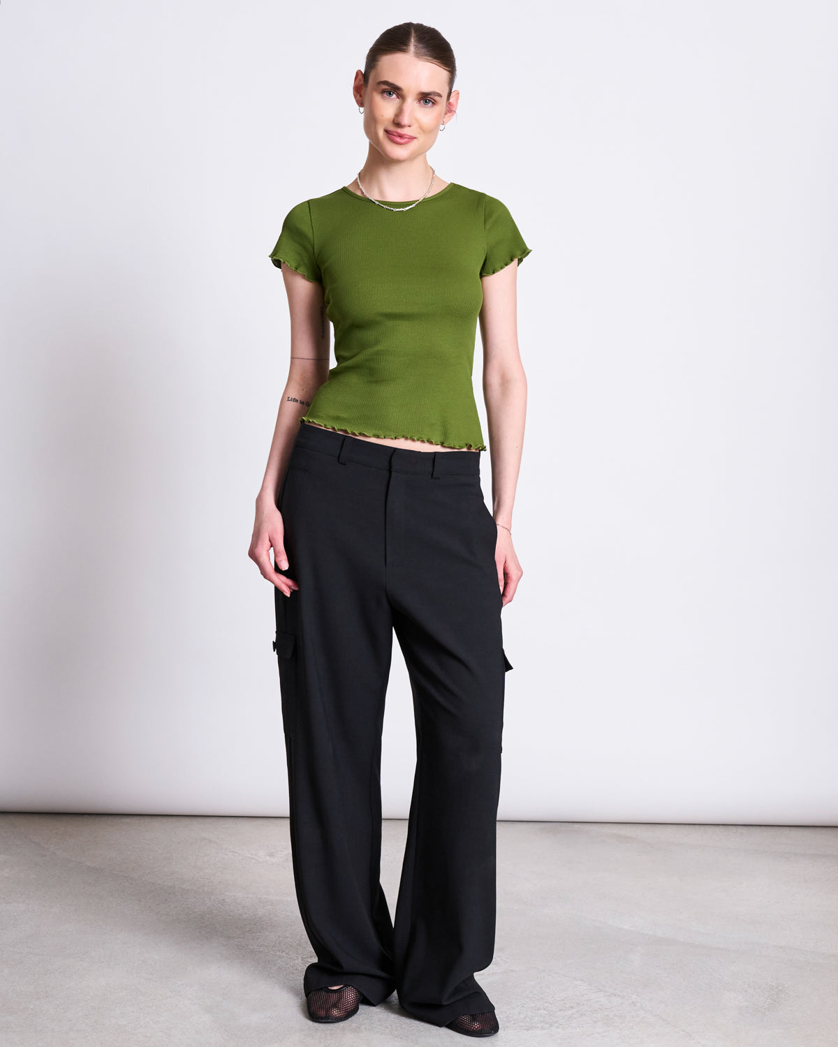 Rippenstruktur superweich auf der Haut an. Das T-Shirt ist tailliert geschnitten und hat