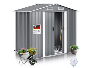 KESSER® XL Metall Gerätehaus 42m³ mit Fundament inkl Arbeitshandschuhe 195x131x186cm 2x Schiebetür & Fundament Geräteschuppen Gartenhaus Schrank Satteldachdach Garten Schuppen
