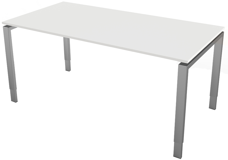Schreibtisch manuell höhenverstellbar 68-76cm (H) 160x80cm (BxT) rechteckig weiß weiß mit alusilbernen Applikationen 4044