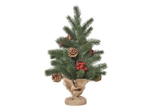 Künstlicher Weihnachtsbaum für den Tisch mit Sockel in Sackleine verpackt grün Ø28 x 50H cm Weihnachtsbaum künstlich Tischbaum LED Kunsttanne Christbaum