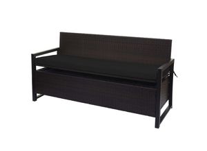 Poly-Rattan 3er Sitzbank MCW-F39 Gartenbank Truhenbank Staufach Aufbewahrung Sitzkissen ~ braun Kissen schwarz