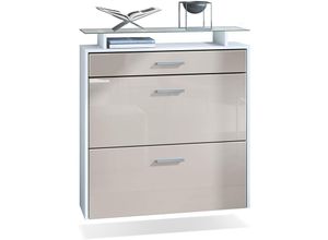 Schuhschrank Schuhkipper Hänge Flur Schrank Diele Regal Malea Weiß Hochglanz - Front in Sandgrau Hochglanz - Front in Sandgrau Hochglanz