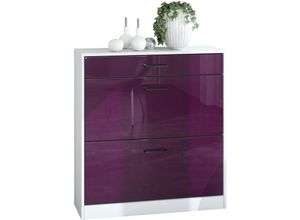 Schuhschrank Schuhkipper Hänge Flur Schrank Diele Regal Malea Weiß Hochglanz - Front in Brombeer Hochglanz - Front in Brombeer Hochglanz - Vladon