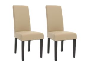 2er-Set Esszimmerstuhl MCW-N66 Stuhl Küchenstuhl Lehnstuhl Massivholz Kunstleder ~ creme schwarze Beine
