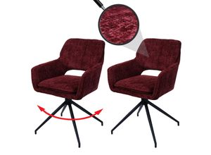 2er-Set Esszimmerstuhl MCW-N74 Küchenstuhl drehbar Auto-Return Stoff Chenille (490g m²) Öko-Tex ~ bordeaux