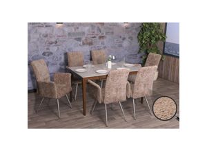 6er-Set Esszimmerstuhl MCW-G55 Küchenstuhl Stuhl mit Armlehne Edelstahl gebürstet Stoff Textil Chenille Öko-Tex ~ braun