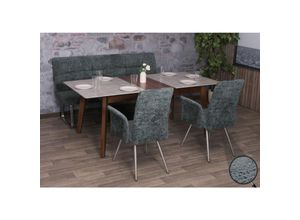 Esszimmer-Set MCW-G55 2er-Set Stuhl mit Armlehne+Sitzbank 180cm Edelstahl gebürstet Stoff Textil Chenille ~ blau-grün