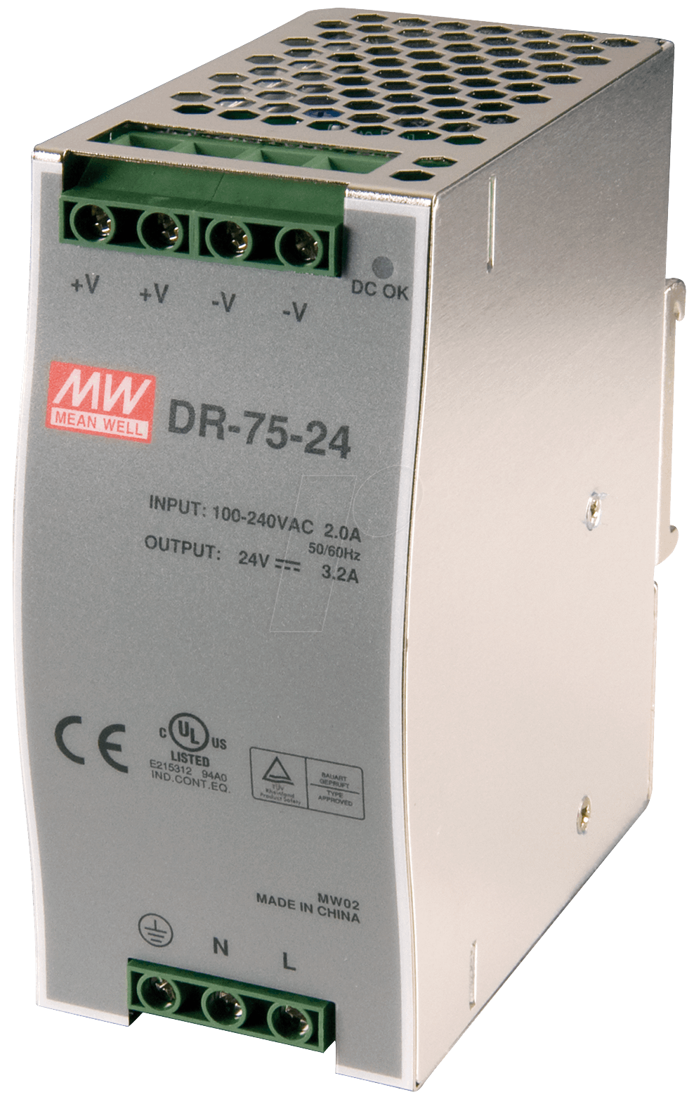 SNT MW-DR75-24 - Schaltnetzteil Hutschiene 76 W 24 V 32 A
