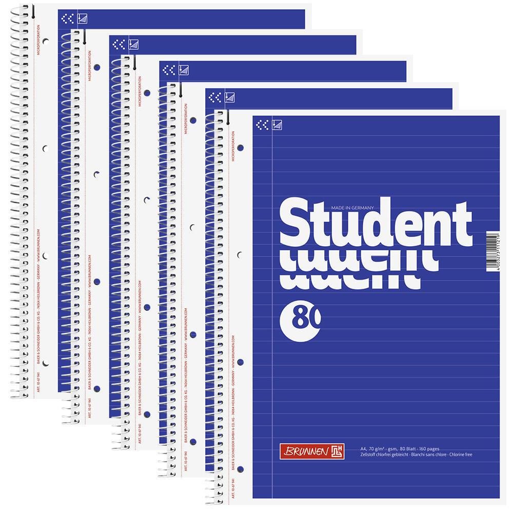 Collegeblock Student 80 10-67 941 A4 liniert 70g 4-fach-Lochung 4003273344631 5 Block
