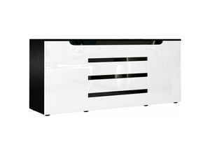 Sideboard Anrichte Kommode Schrank Sylt V2 Schwarz - in Hochglanz & Naturtöne - Weiß Hochglanz Schwarz Hochglanz - Weiß Hochglanz Schwarz