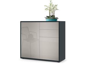 Kommode Sideboard Anrichte Schrank Ben in Schwarz - Hochglanz und Naturtöne - Front in Sandgrau Hochglanz Korpus matt - Front in Sandgrau Hochglanz
