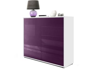 Sideboard Anrichte Schrank Möbel Schublade Kommode Skadu Weiß matt - Hochglanz - Front in Brombeer Hochglanz - Front in Brombeer Hochglanz - Vladon