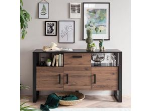 Sideboard im Landhausstil mit Metallfüße Anrichte aus Holz mit verstellbaren Einlegböden Kommode in Wildeichefarbe B 160cm