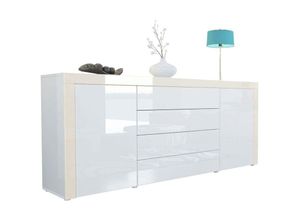 Kommode Schrank Anrichte Sideboard Pavos V2 in Schwarz - Hochglanz & Naturtöne - Weiß Hochglanz - Weiß Hochglanz - Vladon