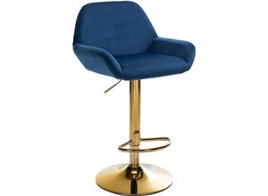 Barhocker Braga Samtbezug mit Gold-Gestell I höhenverstellbar und 360 drehbar I moderner Barstuhl mit Fußstütze für Küche und Bar