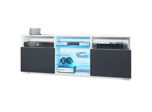 Tv Lowboard Board Schrank Tisch Möbel Granada Anthrazit matt - Hochglanz & Naturtöne - Front in Schwarz matt mit led Beleuchtung - Front in Schwarz